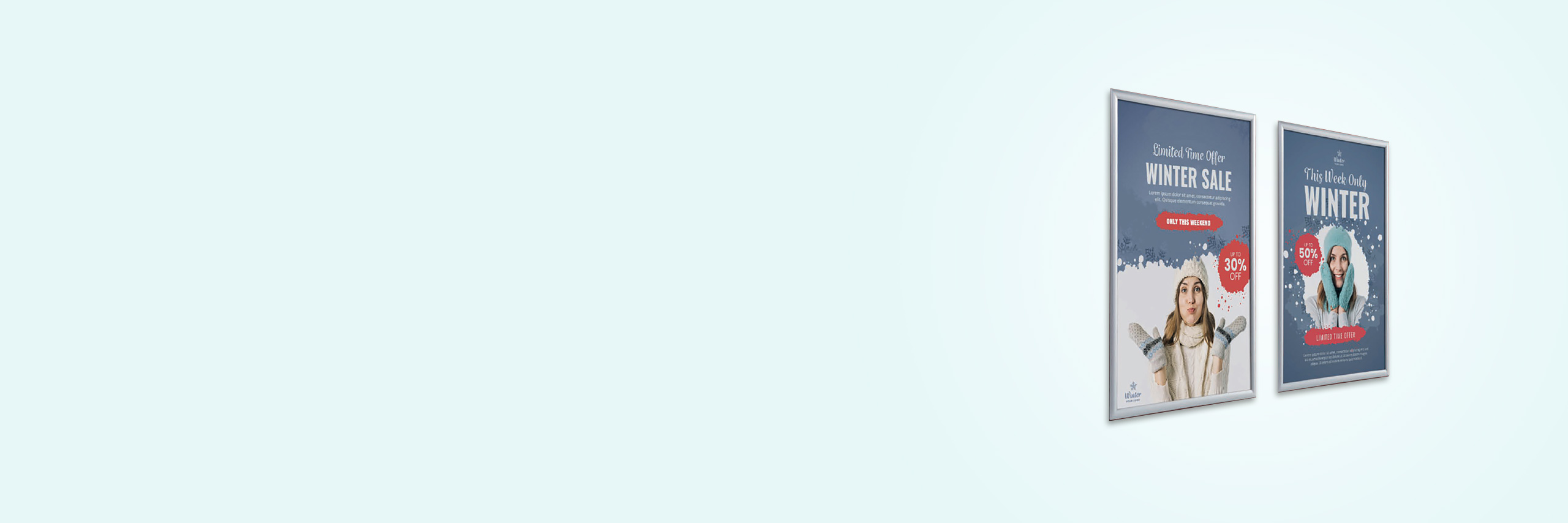 Õhuke ja delikaatne 15mm snapframe raam infolehtedele ja reklaamplakatitele suuruses A5, A4, A3 ja A2.