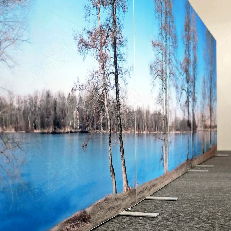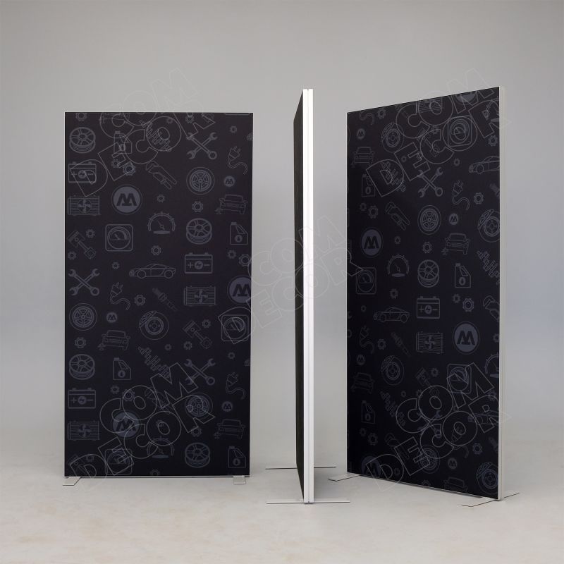 Helisummutava paneeliga akustiline ruumijagaja. Seina katvale kergesti vahetatavale tekstiilkangale trükitakse kliendi oma kujundus või bränding.