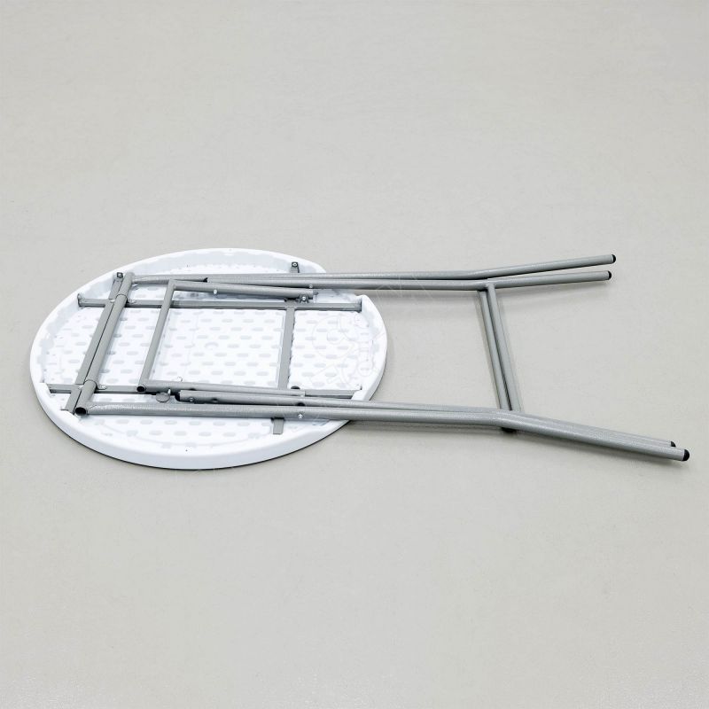 Kokku klapituna kinnituvad terasjalad lauaplaadi külge ja laud on tänu sisseehitatud käepidemele hõlpsasti kaasas kantav. Valge plastkate on lihtsalt lapiga puhtaks pühitav.