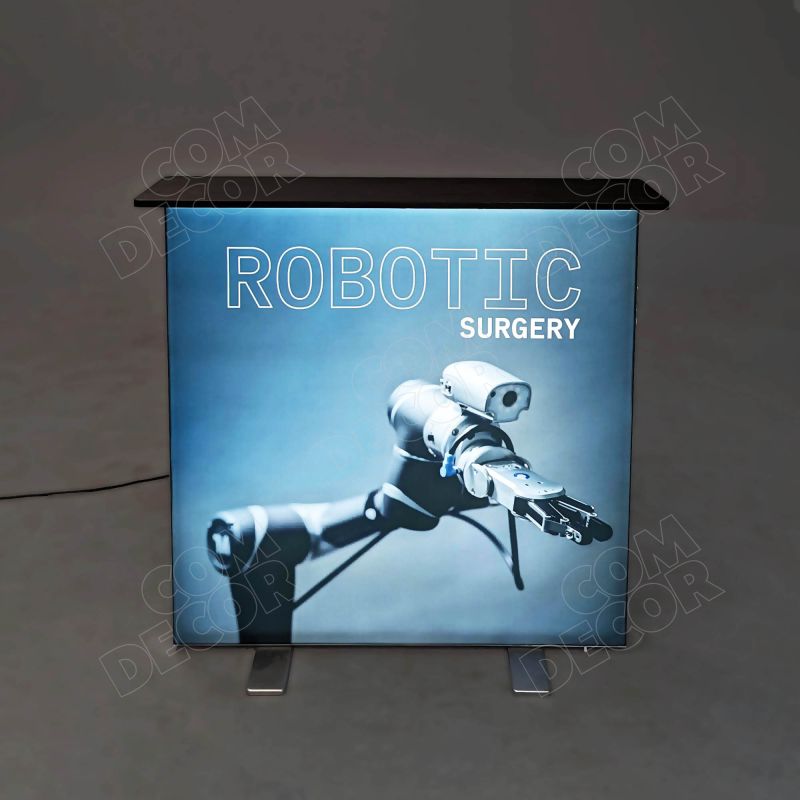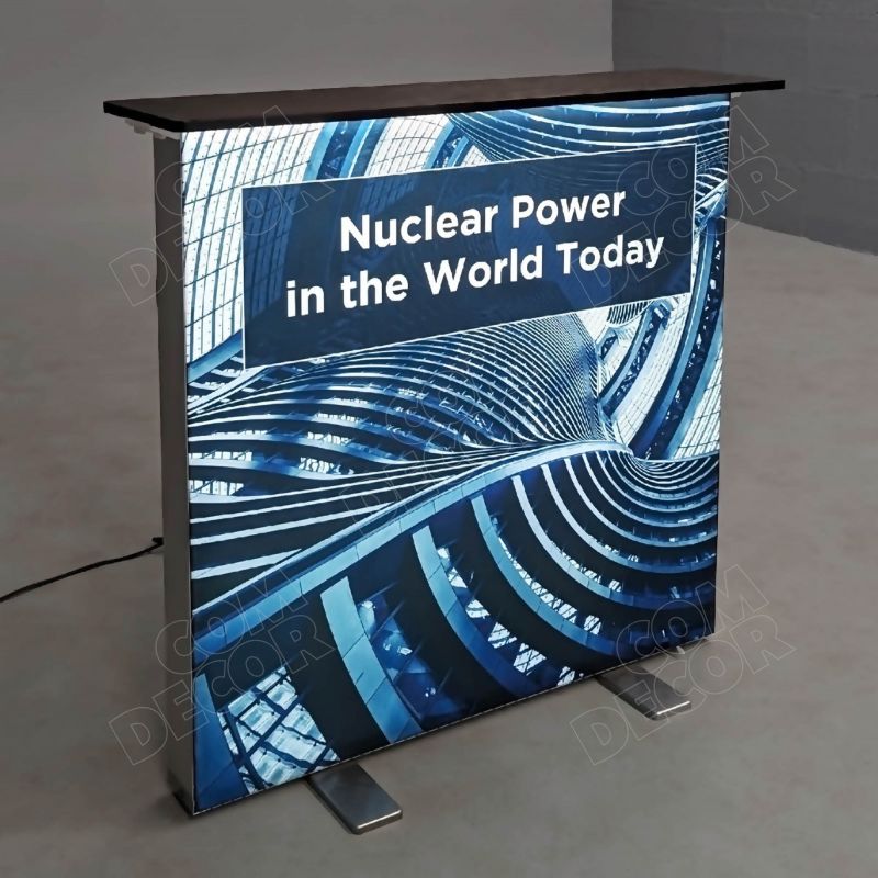 Valguskastiga messilaud / esitluslaud. Lihtne paigaldada ja kaasas kanda. Graafikat on lihtne vahetada. Võid kasutada mitut graafikat vaheldumisi.