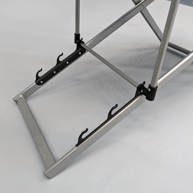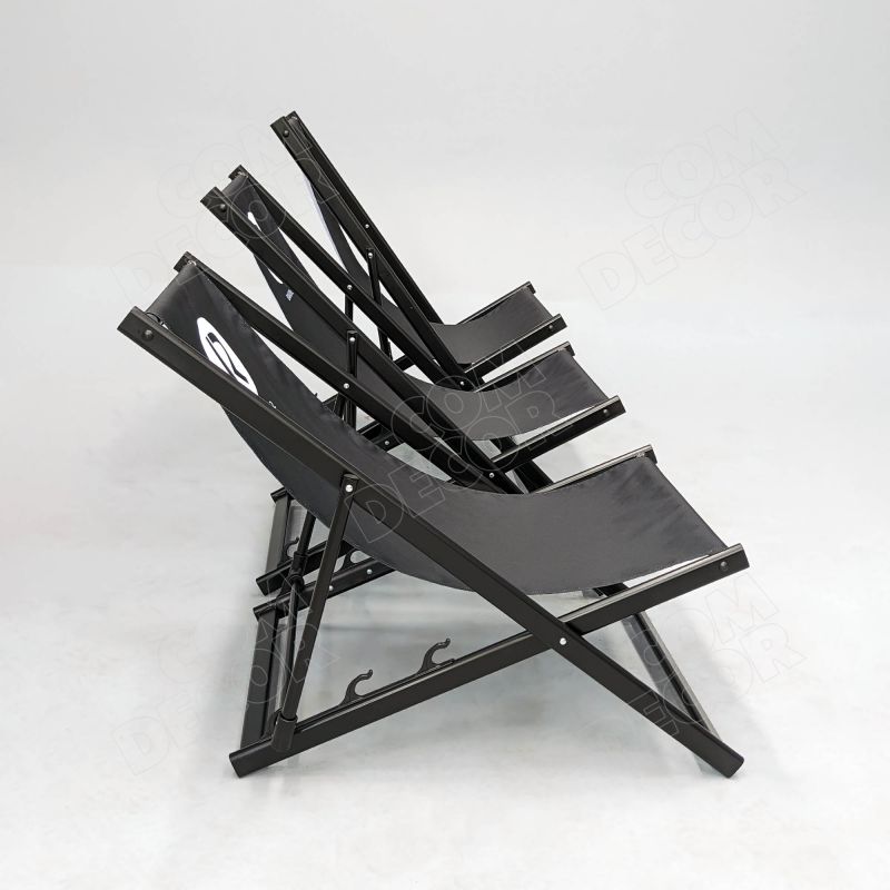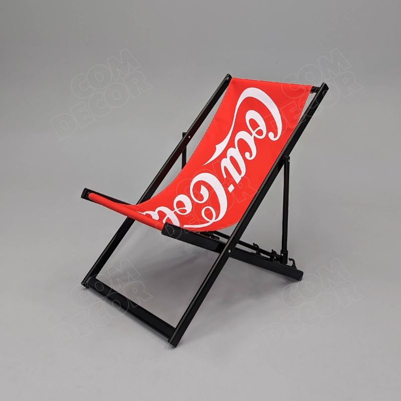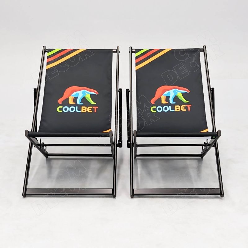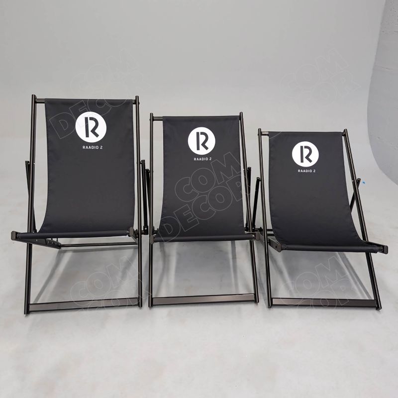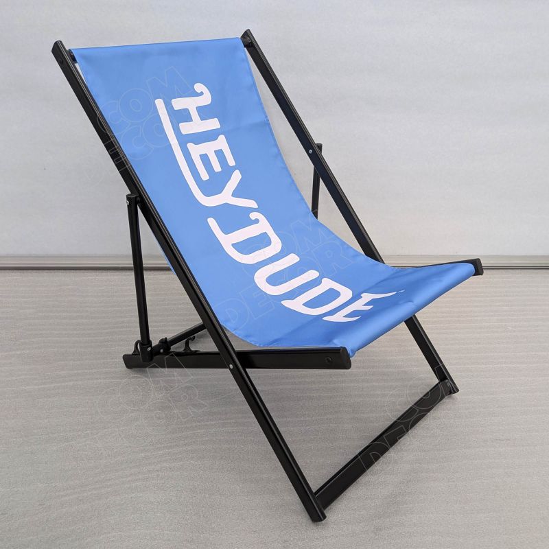 Alumiiniumist reguleeritava kõrgusega päevitustool. Tooli istmeosa on lõuendit meenutavast kangast. Kangale trükitakse kliendi kujundus või bränding.