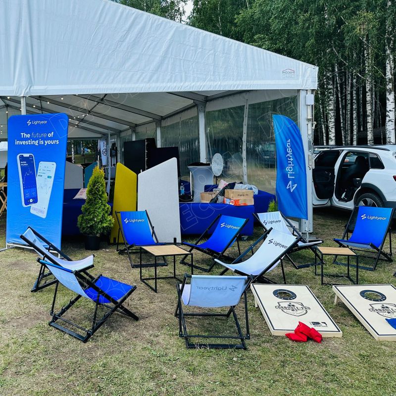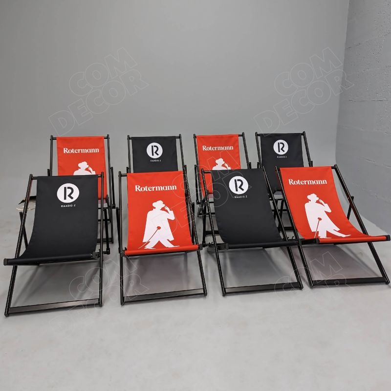 Päevitustoolid on valmistatud kliendi oma disainiga. Tellimuse hinnale lisandub trükiettevalmistustasu (prepressi tasu) 30 € iga uue kujunduse kohta.