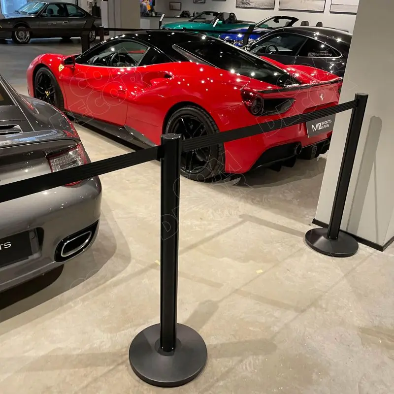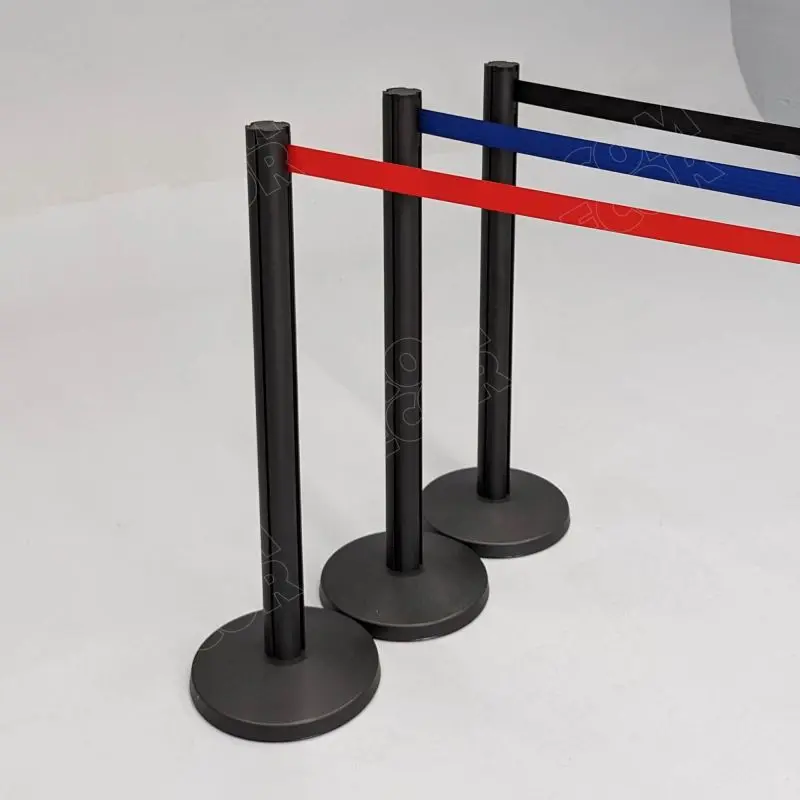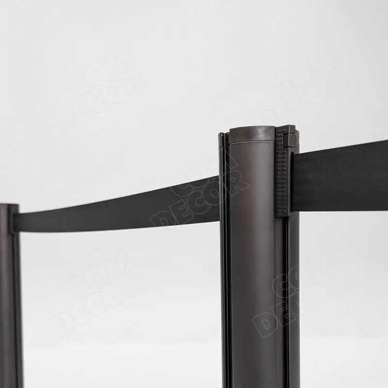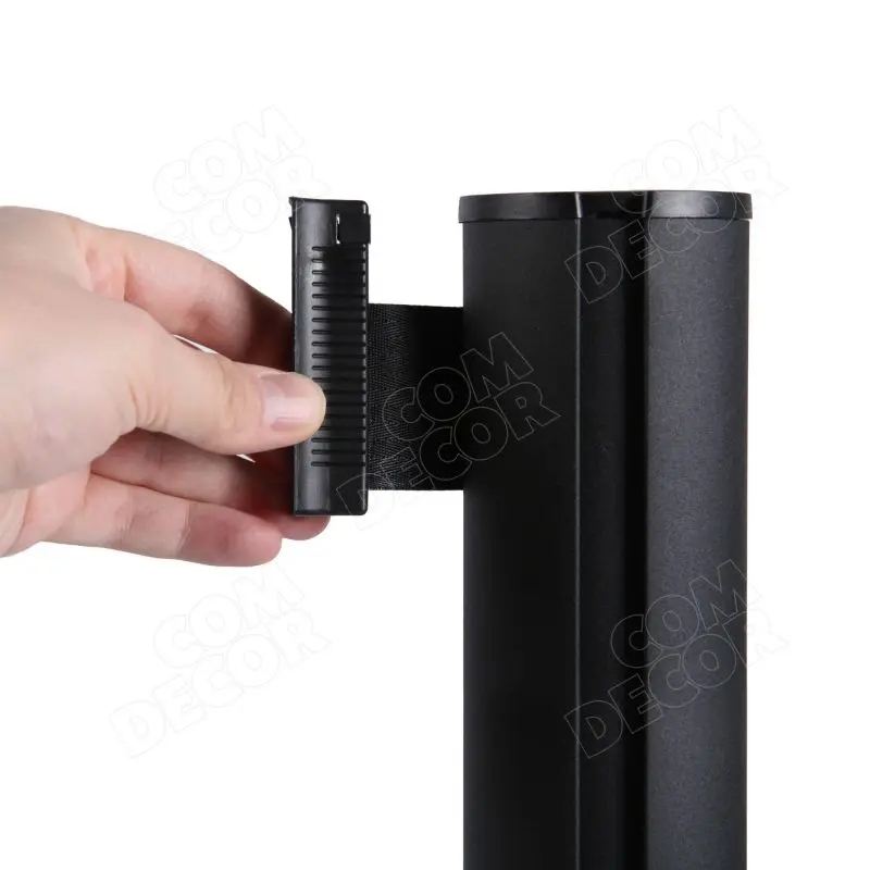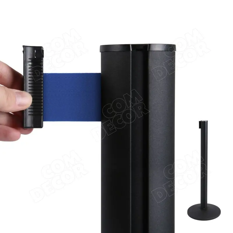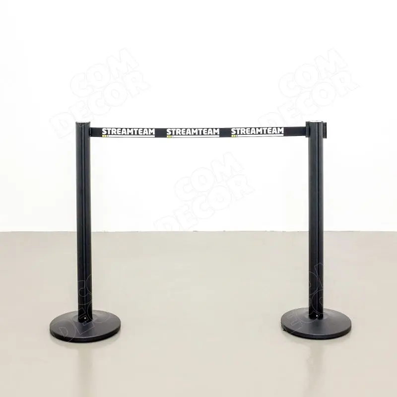 Stabiilne (10 kg), must piirdepost / järjekorrapost. Tagasikeriv piirdelint on 2,6 m pikkune. Lindile võib trükkida brändingu.