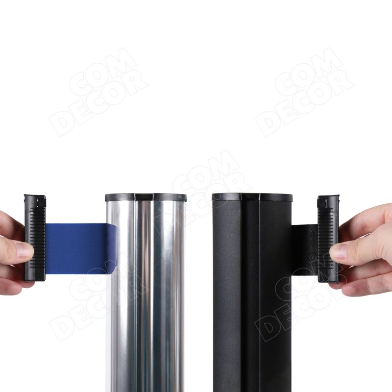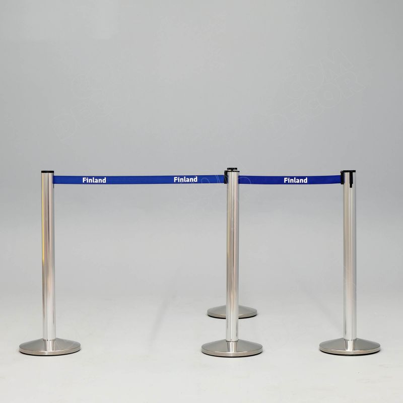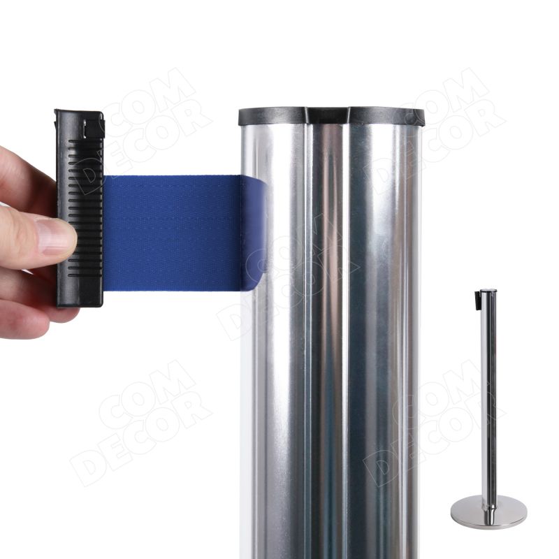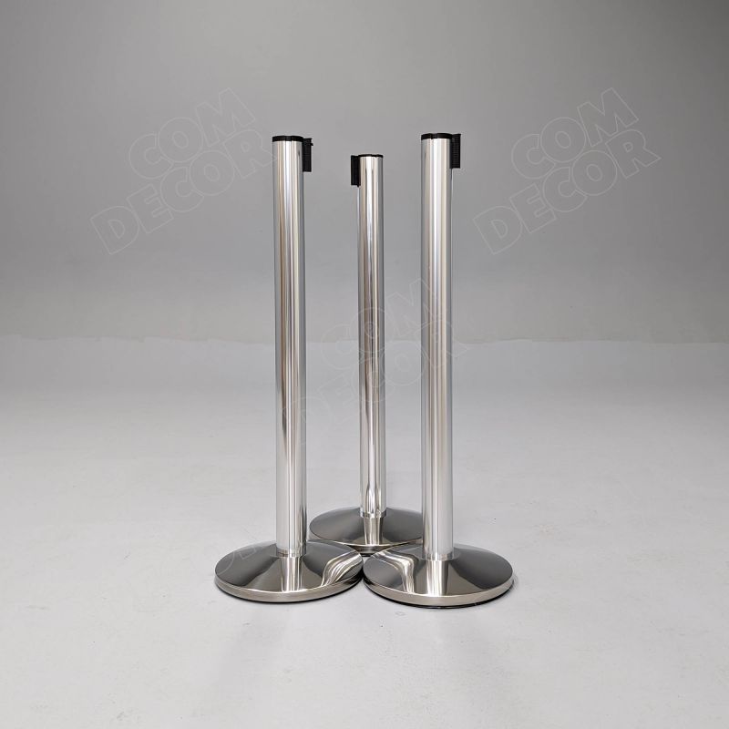 Stabiilne (10 kg), kroomitud piirdepost / järjekorrapost. Tagasikeriv piirdelint on 2,6 m pikkune. Lindile võib trükkida brändingu.