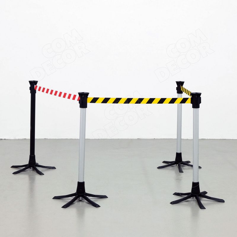 Kaasaskantav ja kiiresti paigaldatav piirdepost / avariitõkis / piire. Ohutuslindi värvid on kollane-must või punane-valge.
