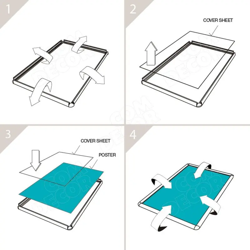 Tänu snapframe süsteemile on plakatit väga lihtne vahetada. Plakati ees on UV kindel peegeldamisvastase pinnatöötlusega kaitsekile.