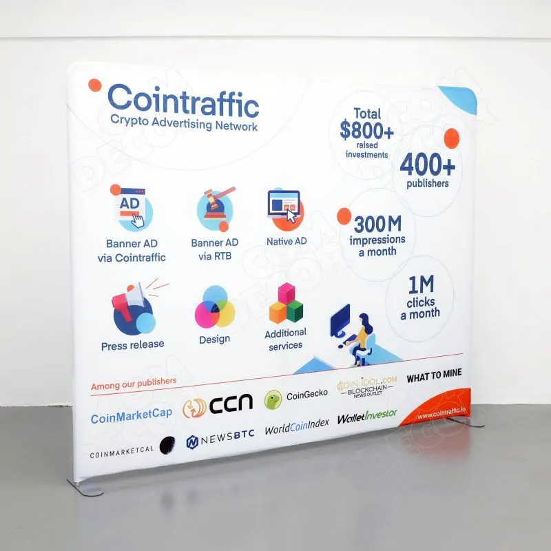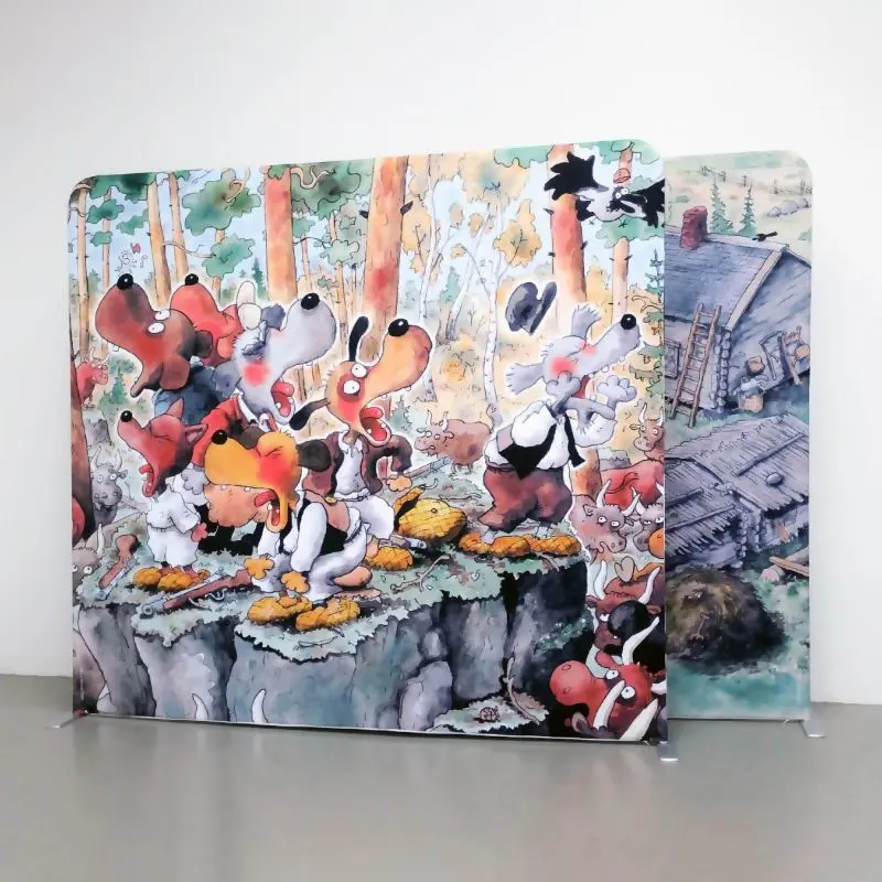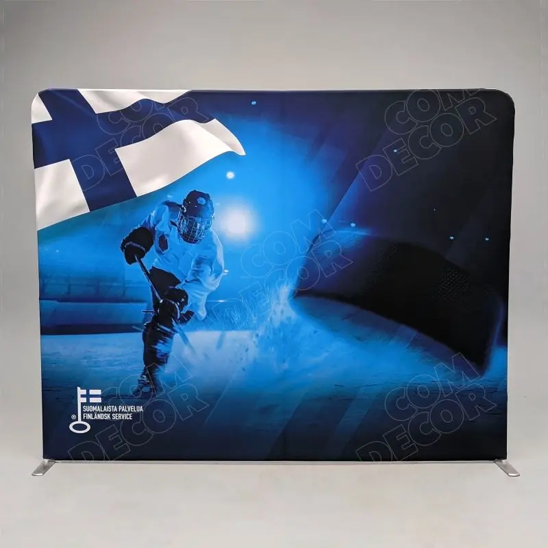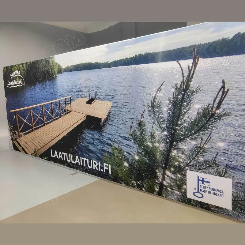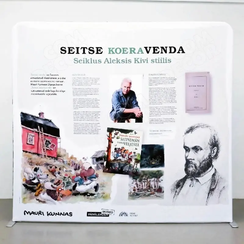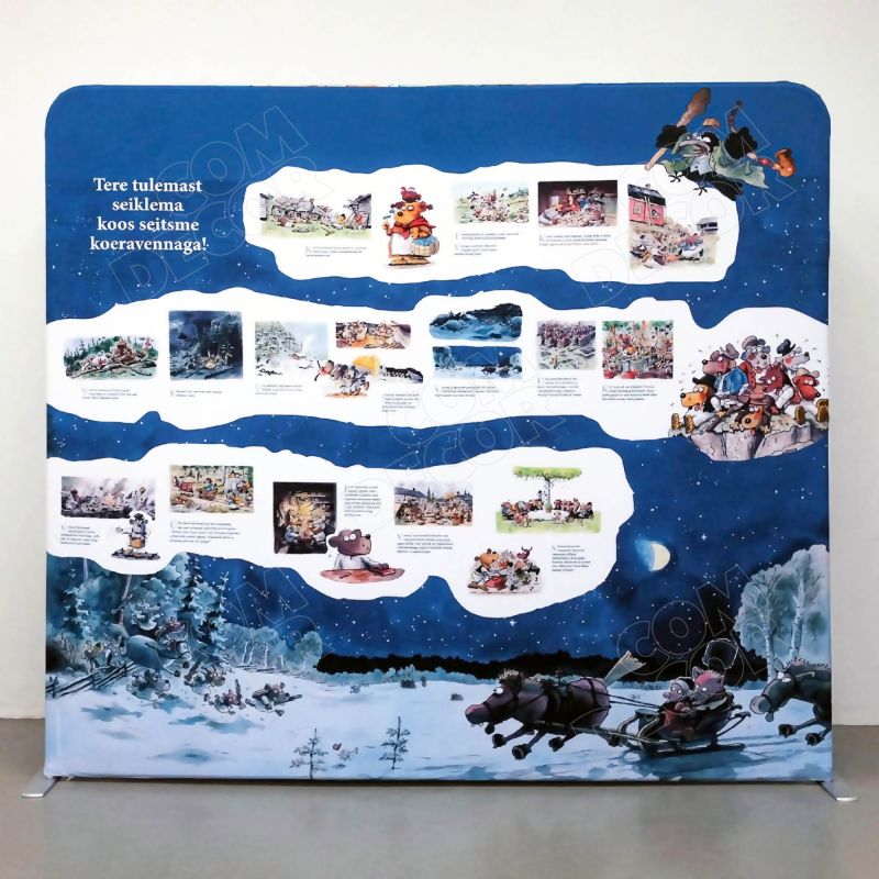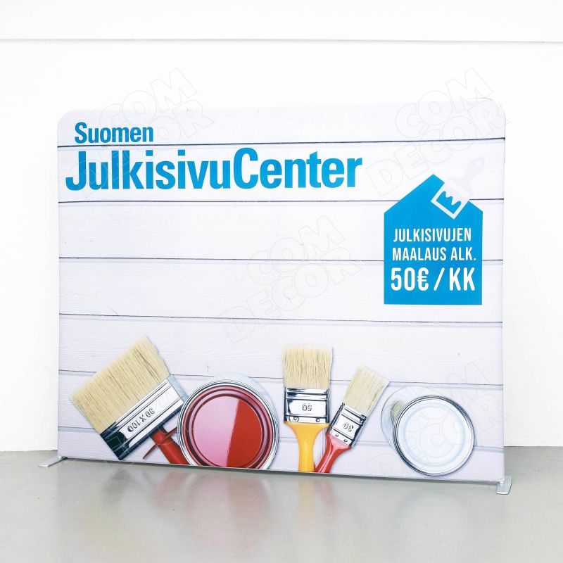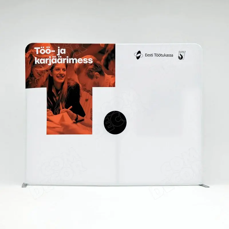 Soodne, ülikerge, pakitult väike ja lihtsalt paigaldatav taustasein. Trükk on mõlemal küljel. Asendab tavalised pop-up stendid.