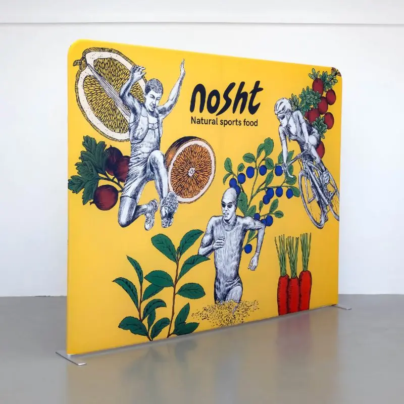 Lihtsalt lukustuv 32mm toruraam ja sukana peale tõmmatav kangas on kiirelt ja tööriistavabalt paigaldatavad, kaaluvad vähe ning ei võta pakitult ruumi. Kumerate nurkadega üleni kangaga kaetud stendid mõjuvad uudselt ja kaasaegselt.