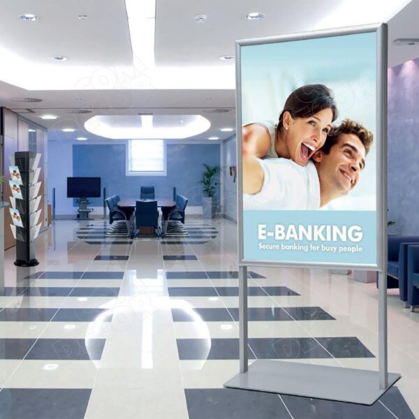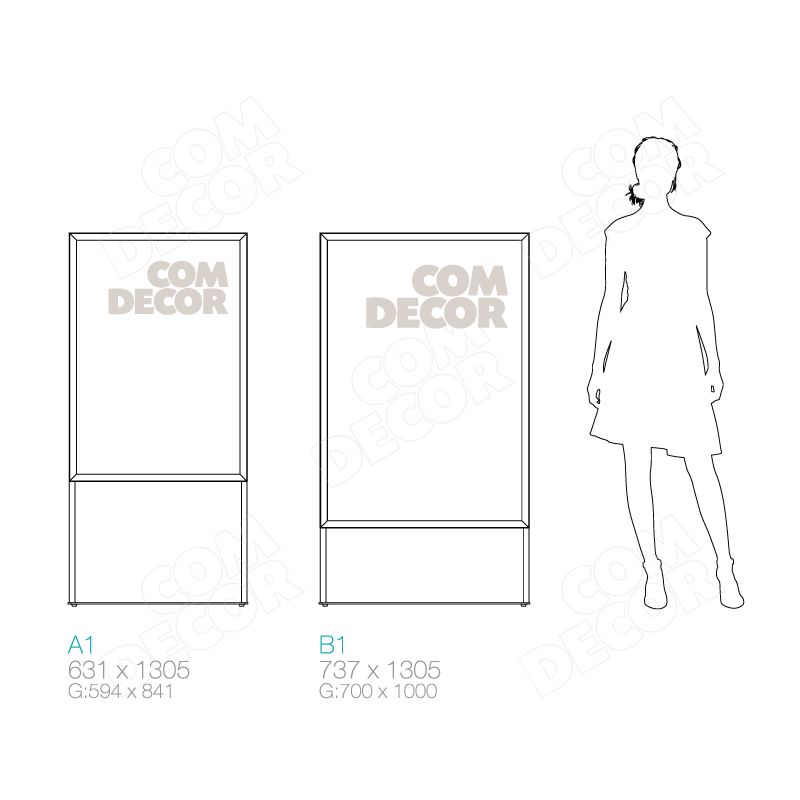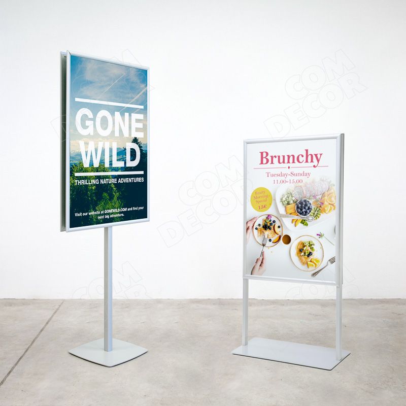 Elegantne kahepoolne reklaamalus A1 või B1 (70×100 cm) plakatitele. Stiilsem ja kompaktsem kui a-stend.
