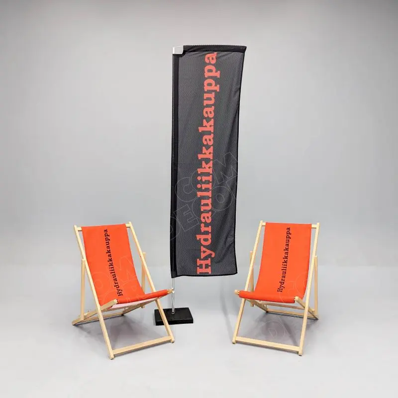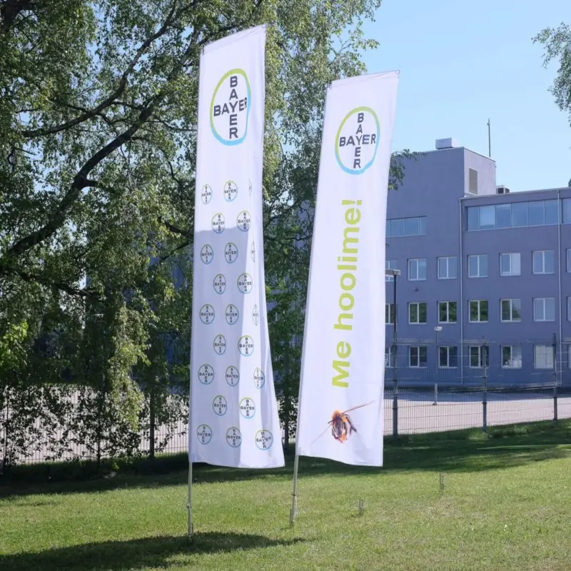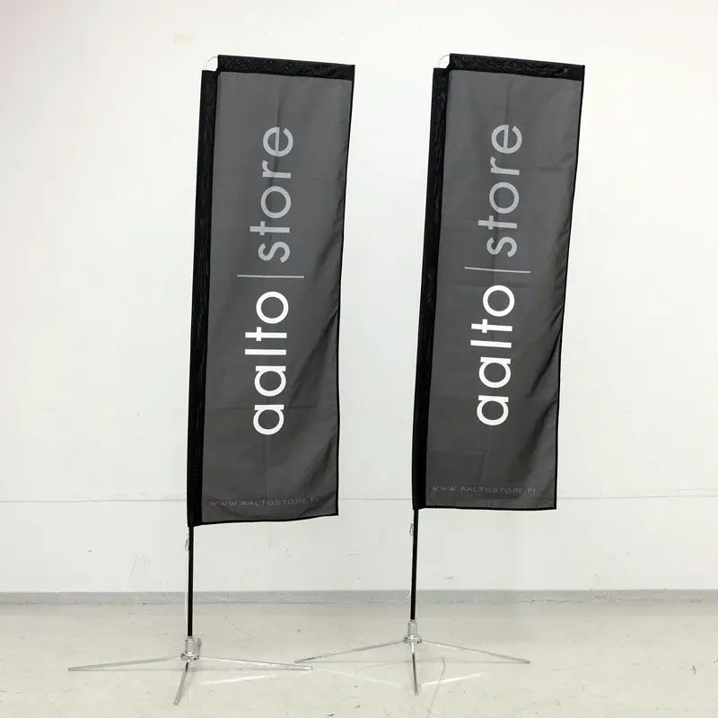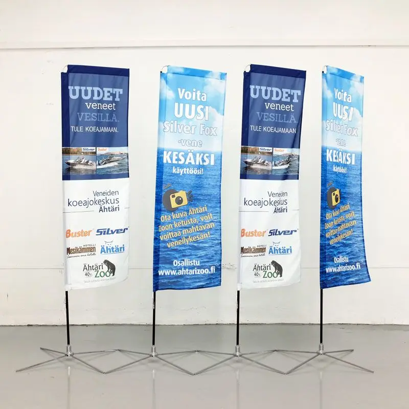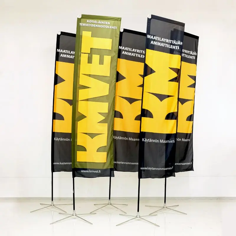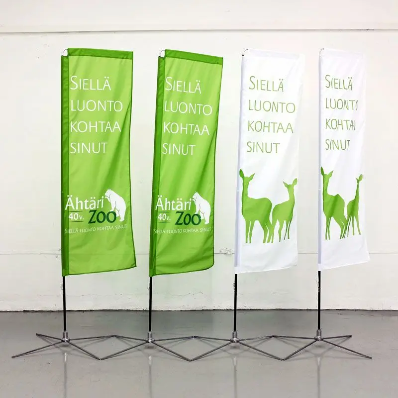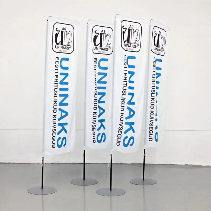 Beach flag lipud trükib meie liputehas kas tavalisele lipukangale või kauakestvale Airmesh kangale.