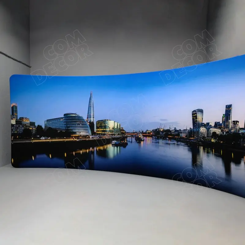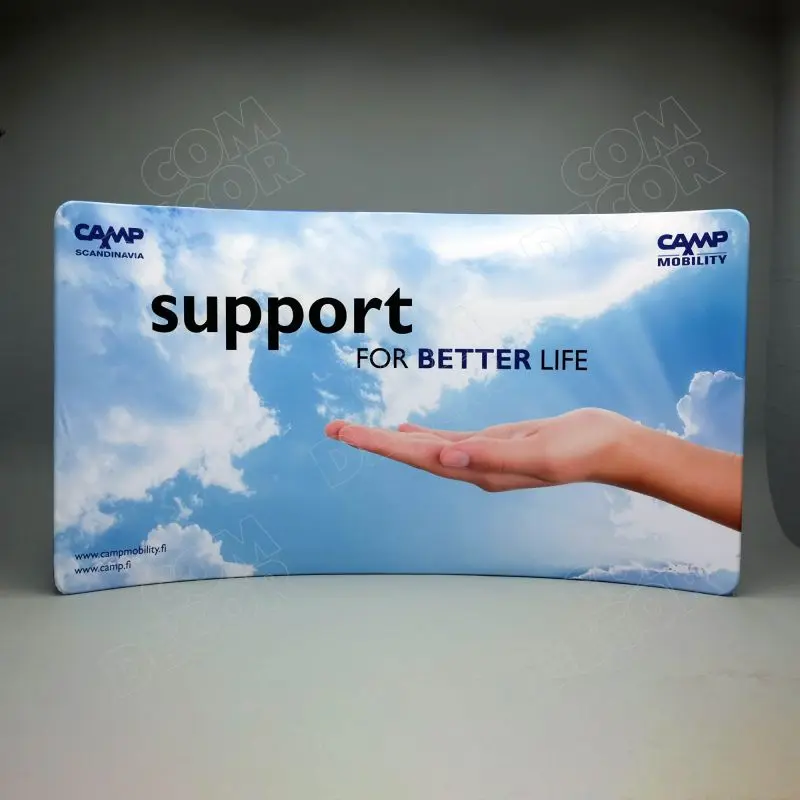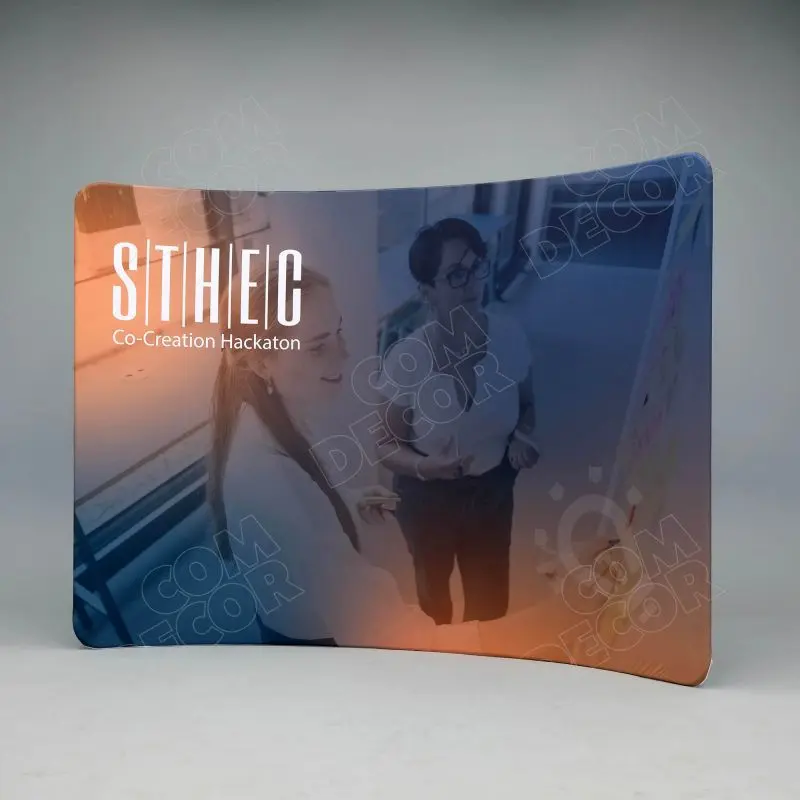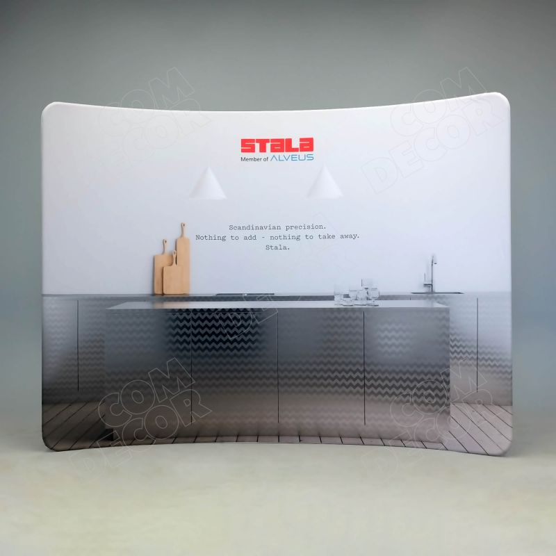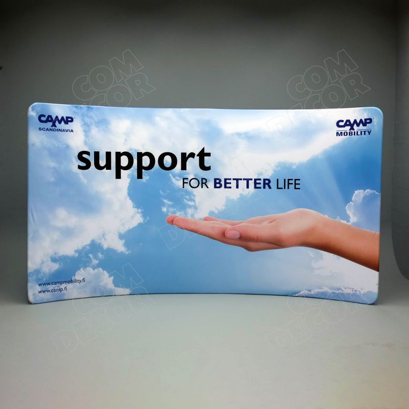 Kumer premium taseme reklaamsein / messisein / taustasein. Ülikerge, pakitult väike ja lihtsalt paigaldatav. Trükk on mõlemal pool. Vahetab välja vanad pop-up stendid.