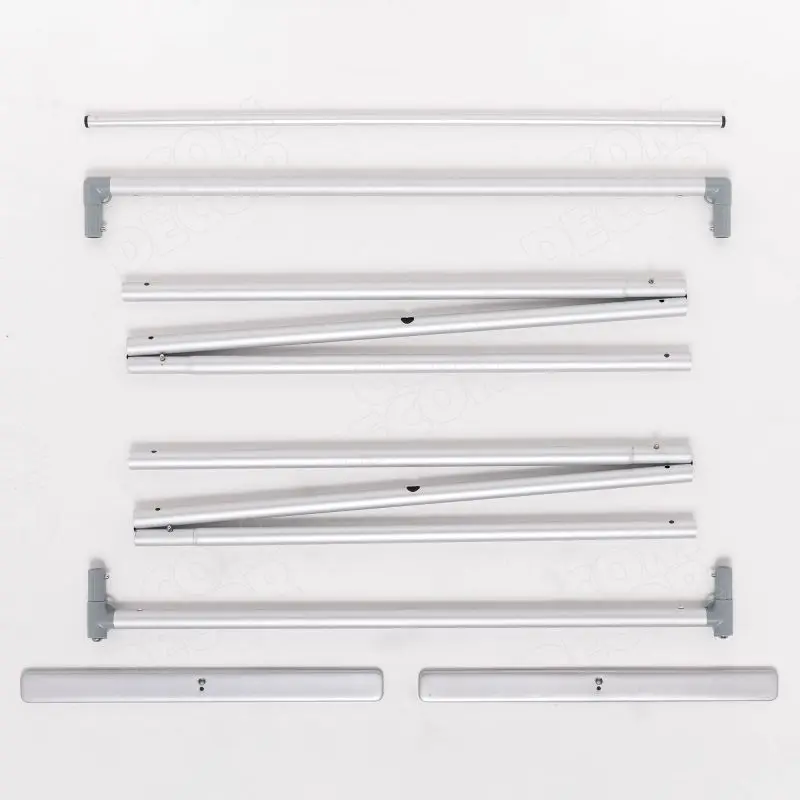 Alumiiniumist toruraami detailid on paigalduse lihtsustamiseks selgelt märgistatud. Raam on kerge, pakitult väike ja seda on lihtne kaasas kanda.