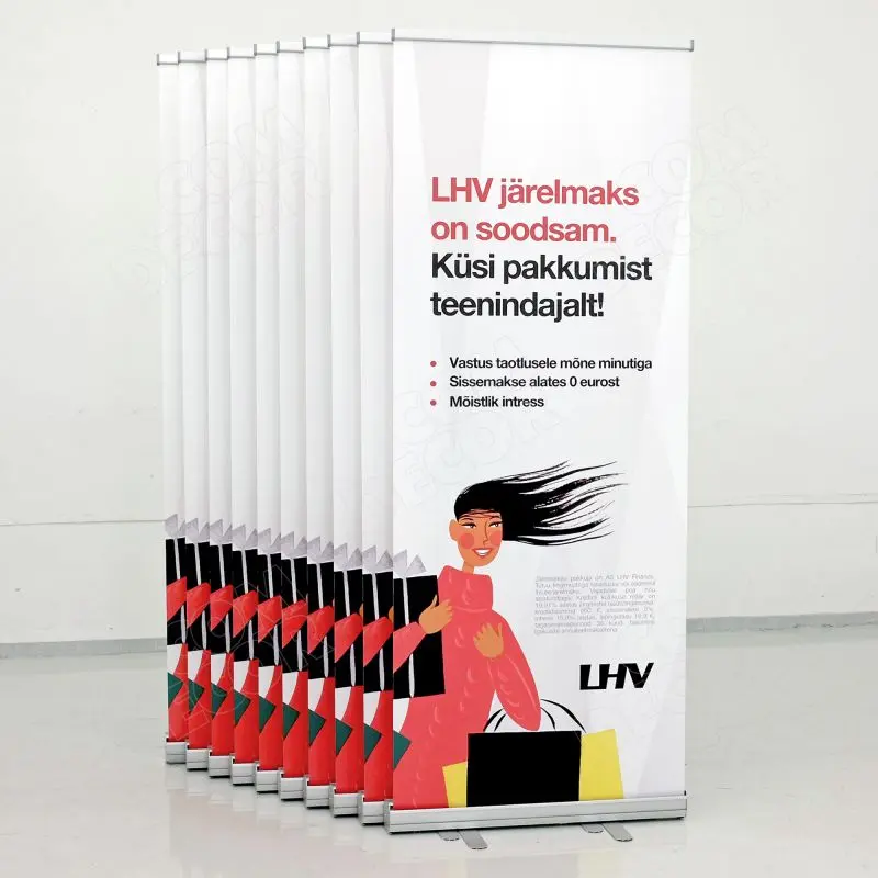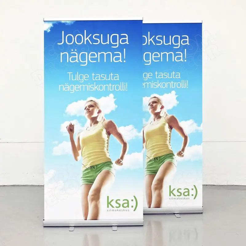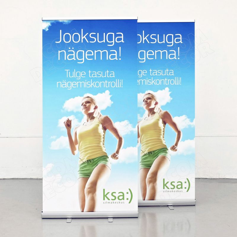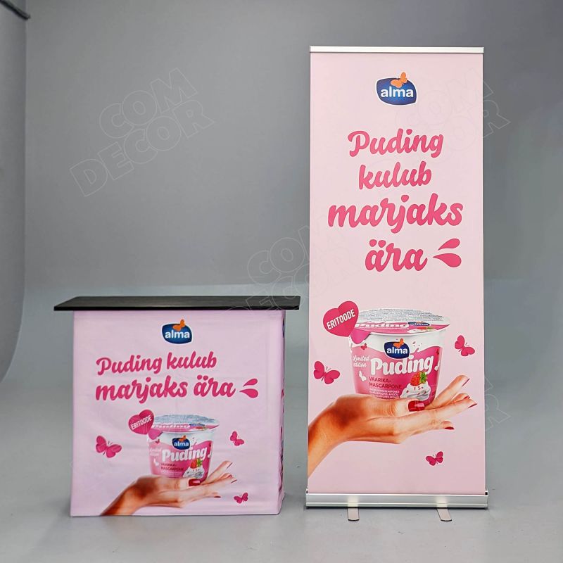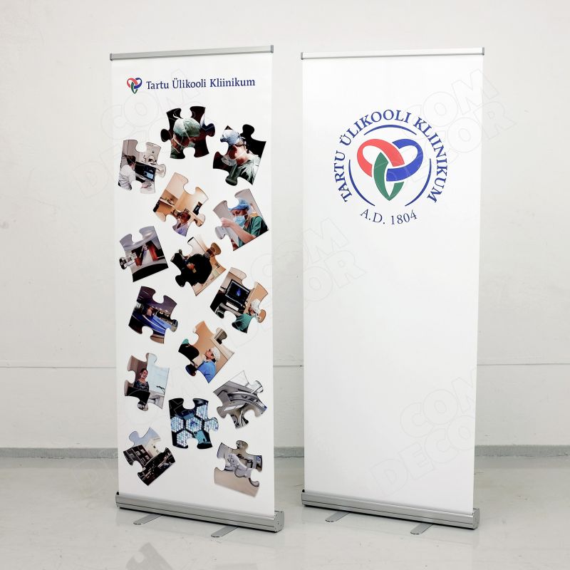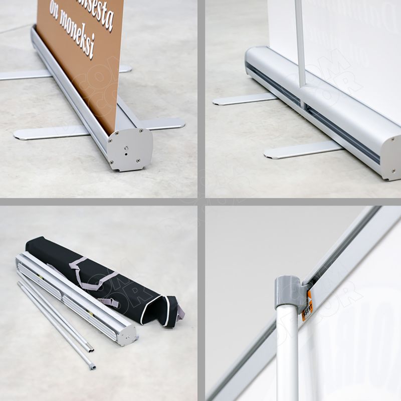 Komplekti kuulub roll-up stend ja pehmendusega õlakott.