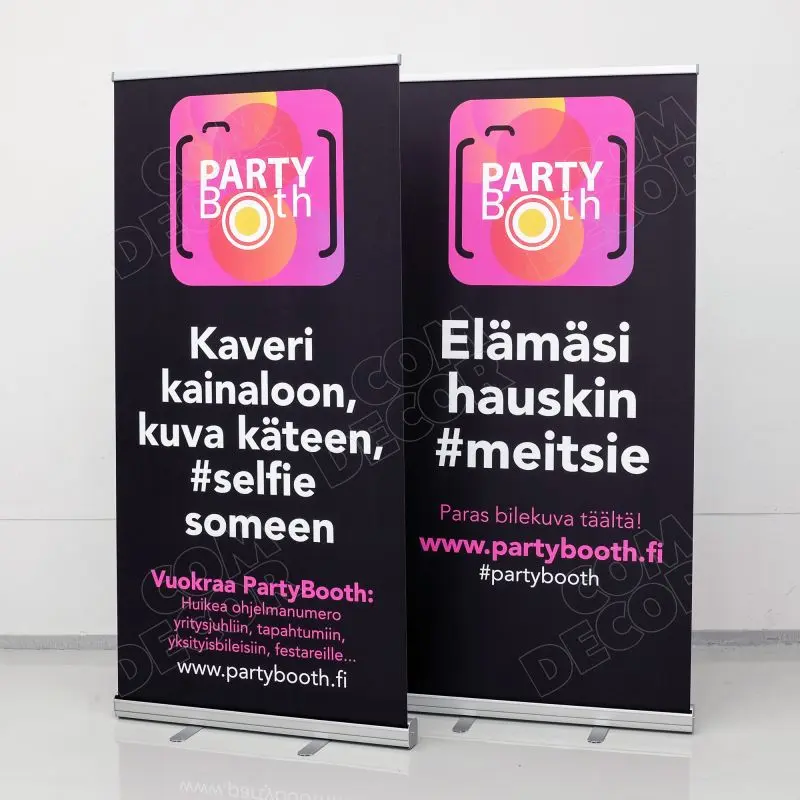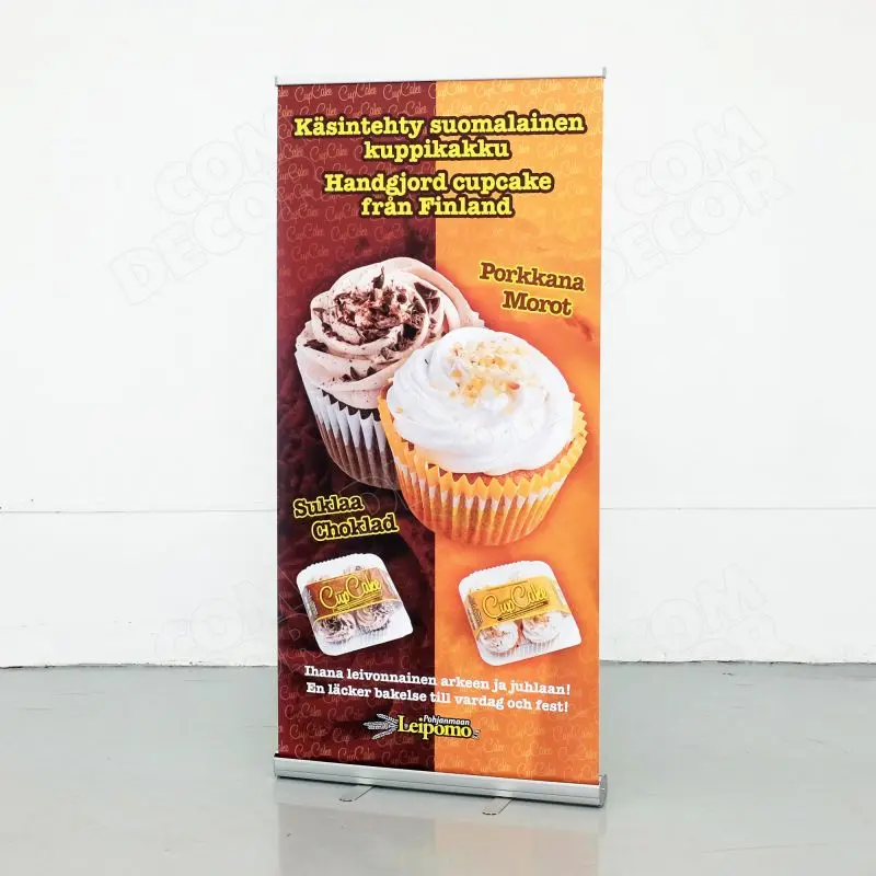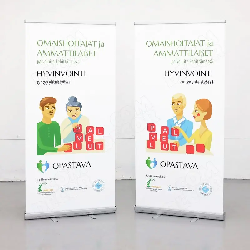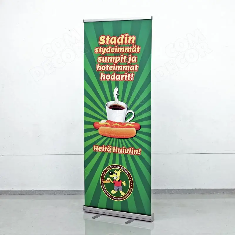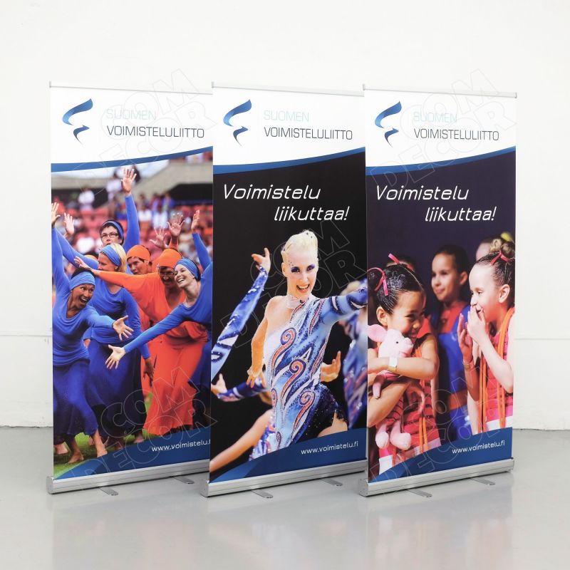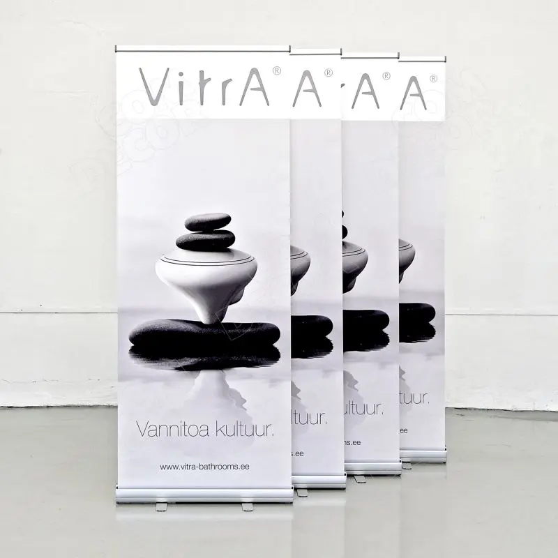 Komplekti kuulub roll-up stend ja pehmendusega õlakott.