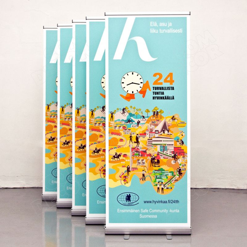 Tänu väiksele kaalule ja lihtsale paigaldamisele sobib see rollup rakendusteks, mis eeldavad palju liikumist (n: müügiesindajad) või kiiret ja odavat mitme reklaami paigaldamist.