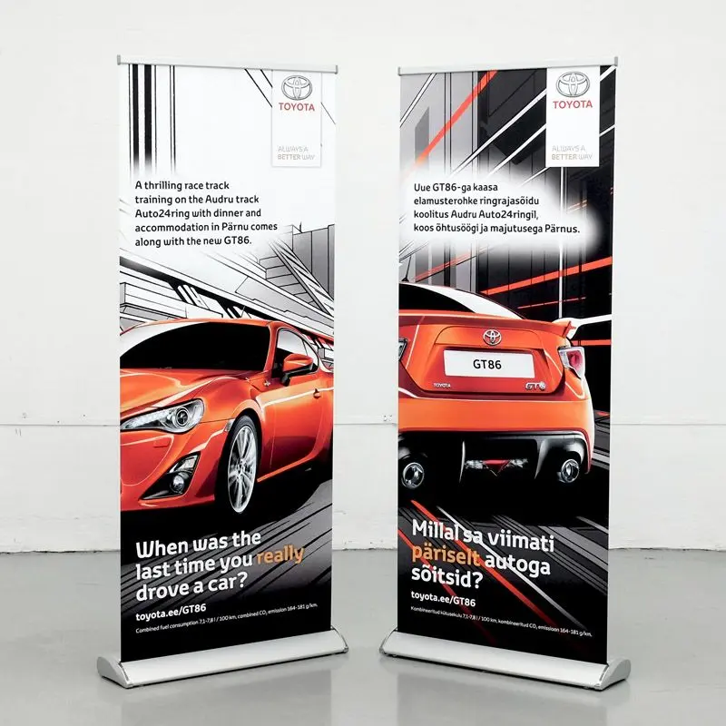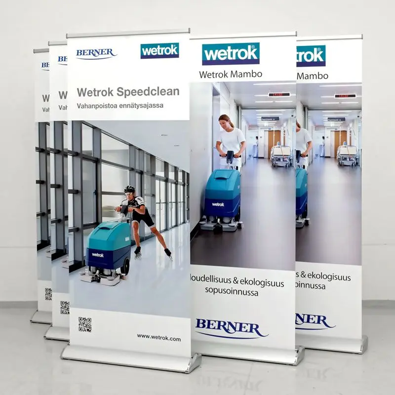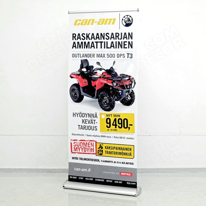 Kaasaskantav, alla minutiga paigaldatav väga tugev roll-up stend. Sobib rakendusteks, mis eeldavad stendi teisaldamist või liikumist ja kiiret reklaami paigaldamist. Tänu oma tugevusele ja stabiilsusele hea roll-up kaubanduskeskusesse või mujale avalikku ruumi.