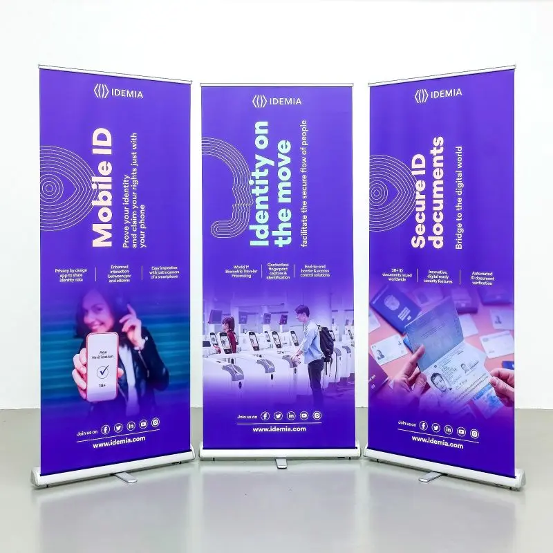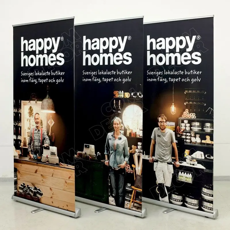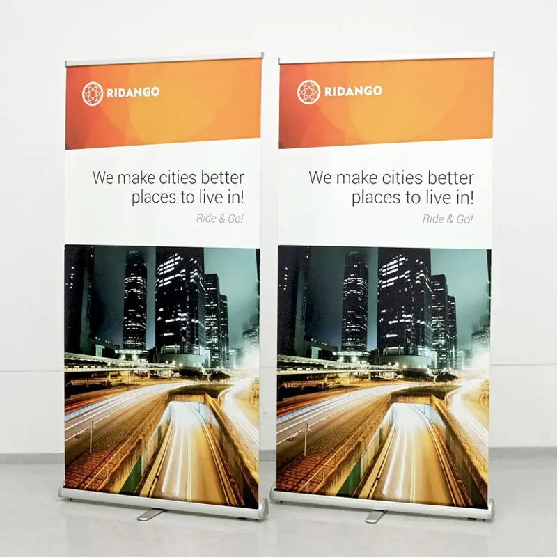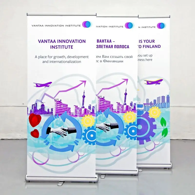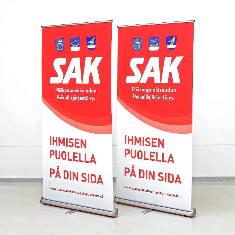 Eristuv, töökindel ja soodne kolmnurkse kerega roll up reklaamstend. Laius 85 cm / 100 cm / 120 cm.