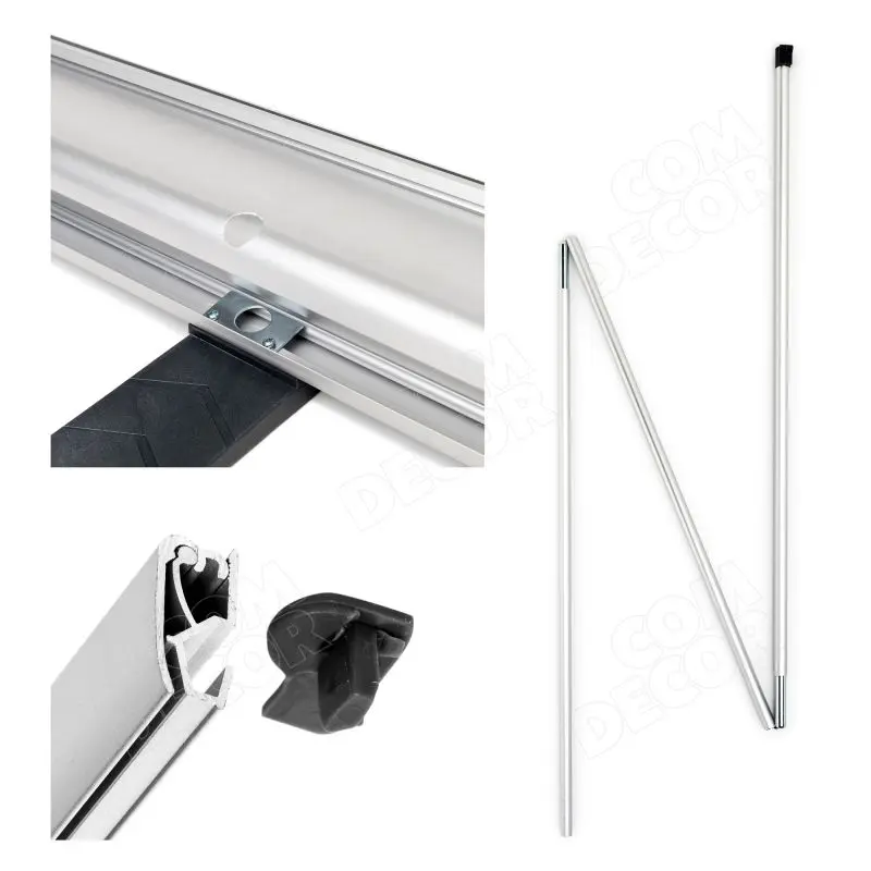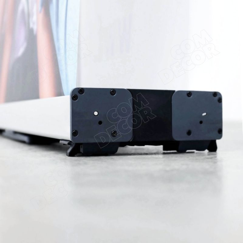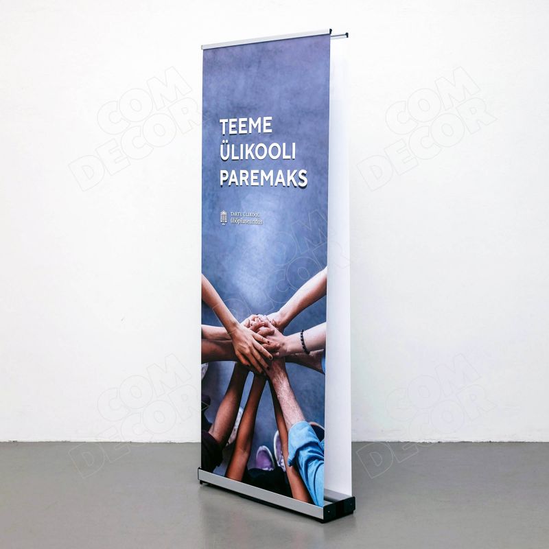 Ühenduskomplektiga saab roll upid üksteise külge kinnitada. Nii tekib kahepoolne mõlemalt poolt vaadeldav reklaamstend. See on kerge, lihtsalt käsitsetav, töökindla mehhanismiga ning suurepräase hinna-kvaliteedi suhtega reklaamstend. Sobib väga hästi kaasas kandmiseks.