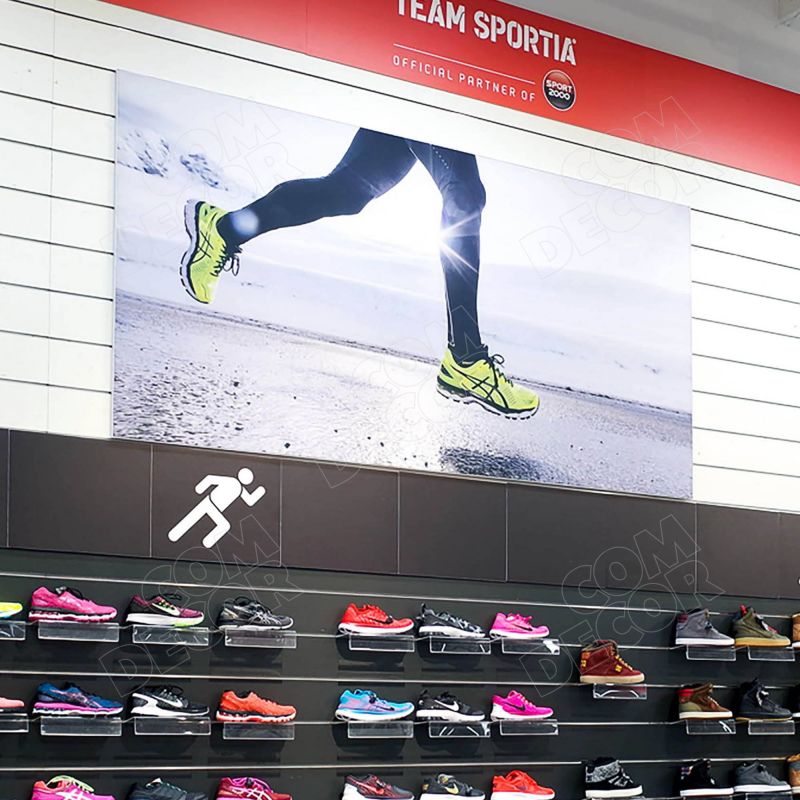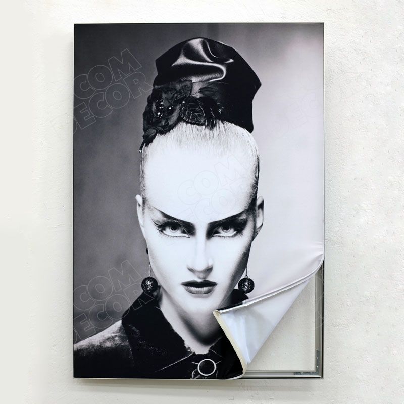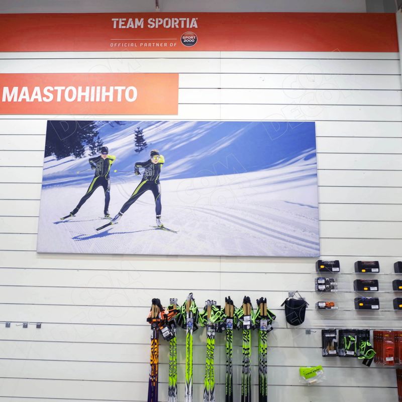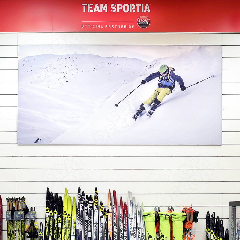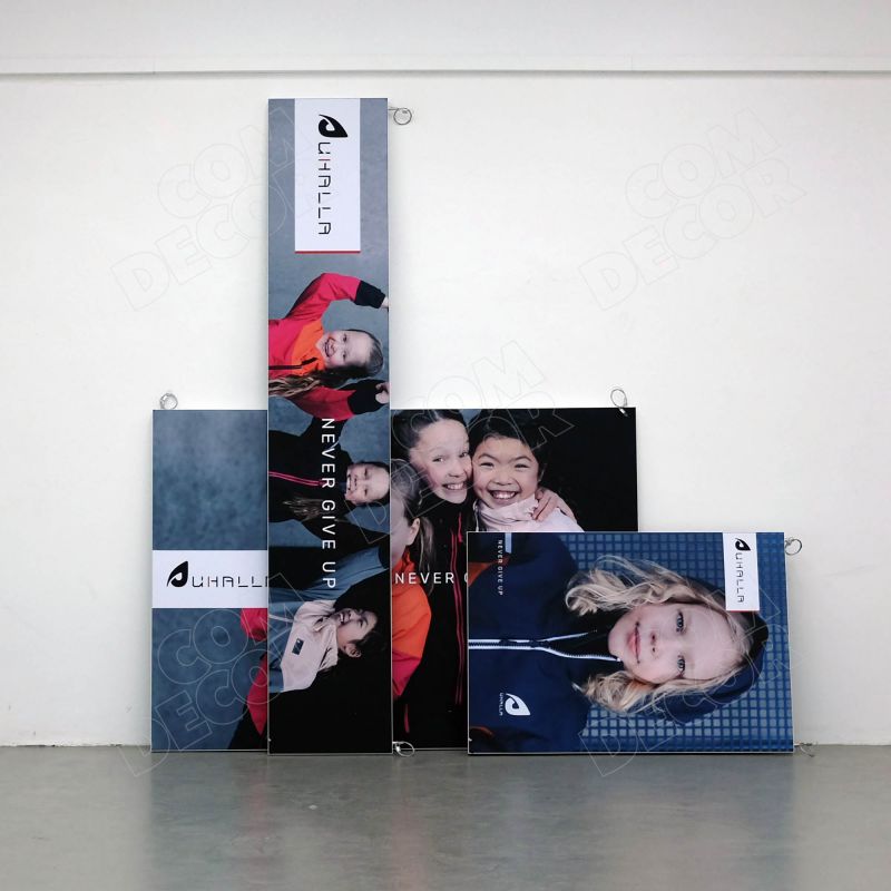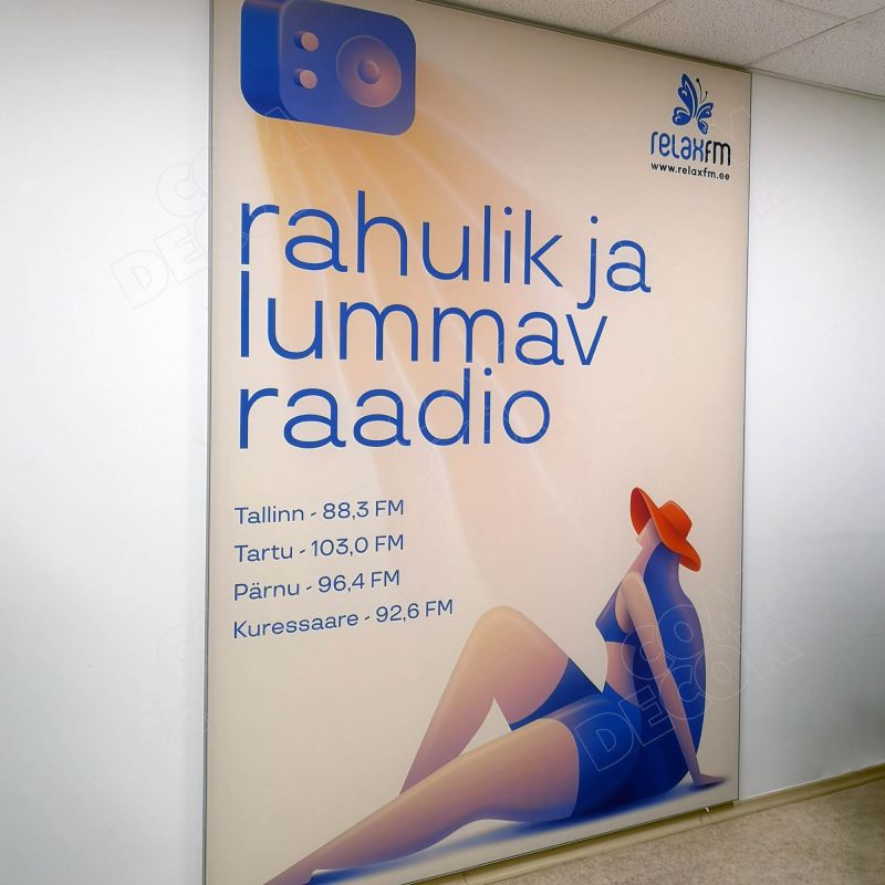 Alumiiniumraami abil seinale kinnitatav trükitud reklaamkangas / seinäbänner. Reklaamkangas on lihtsalt vahetatav.