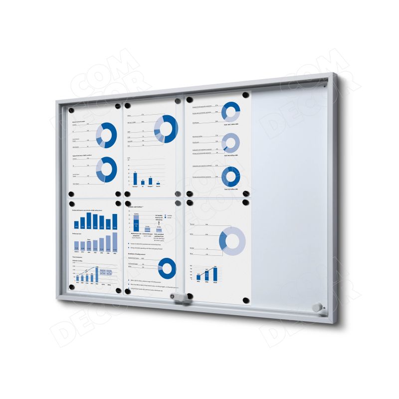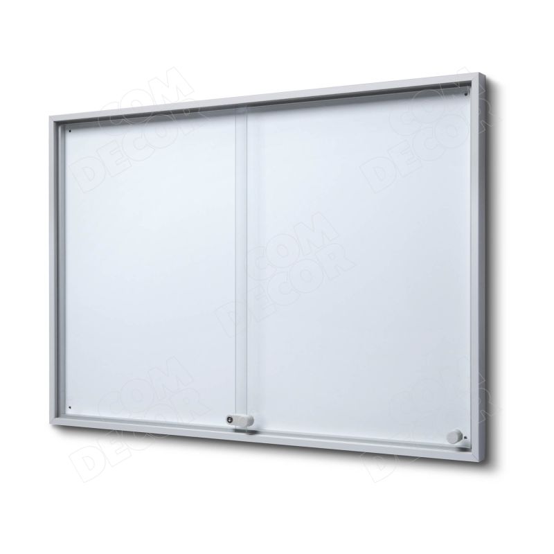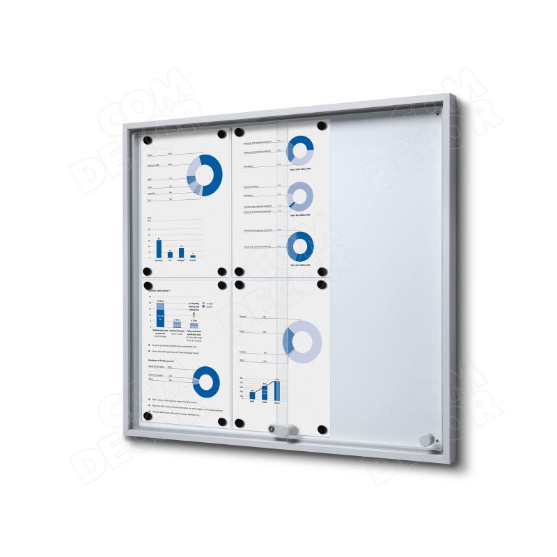 Lukustatav liugustega teadetetahvel / infostend. Infolehed kinnitatakse magnetitega. Tagaseinale on võimalik kirjutada tahvlimarkeriga.