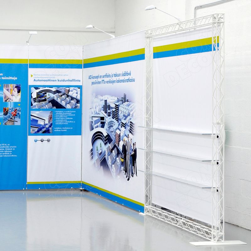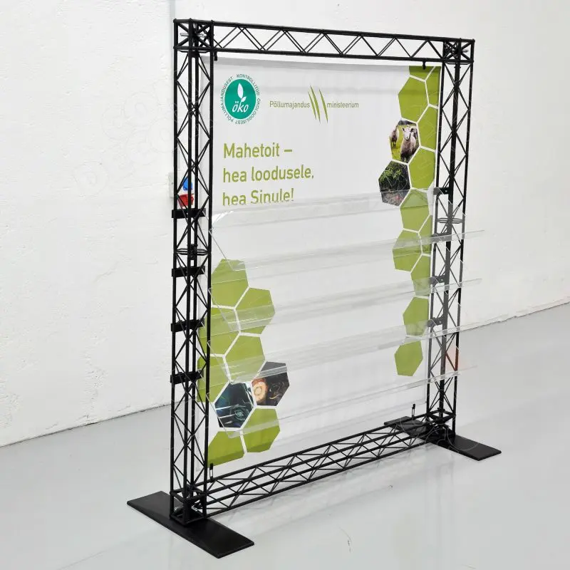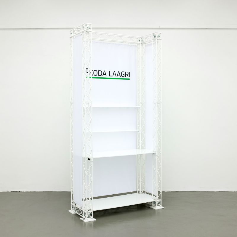 Pop up tootestend / riiulitega esitlusstend reklaammaterialide ja tootenäidiste eksponeerimiseks messil, tooteesitlusel, näidisteruumis või pop up kaupluses.
