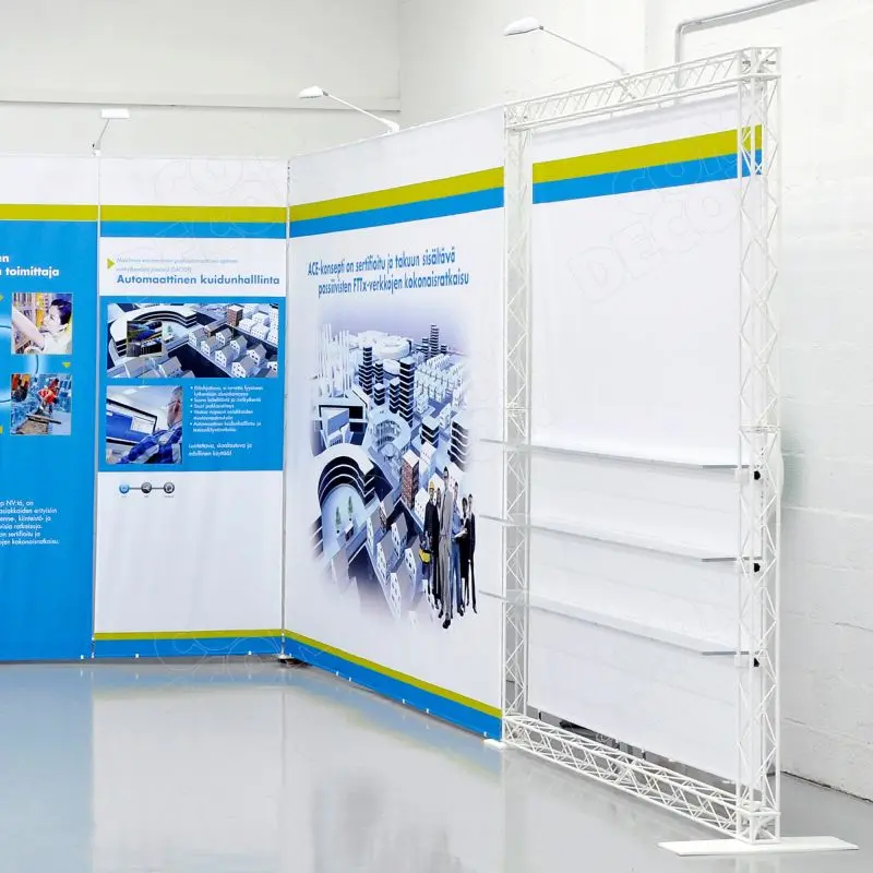 Paigaldus on kiire, selleks pole vaja tööriistu ja lahtivõetult võtavad stendid vähe ruumi. Konstruktsiooni saab laiendada ja vajadusel samadest osadest uue kujuga stendi teha. Võid näiteks teha näidistesaali tootestendi, selle messi ajaks ümber ehitada tootealuseks ning müügi kampaania ajal kasutada teda popup poena mõnel üritusel.