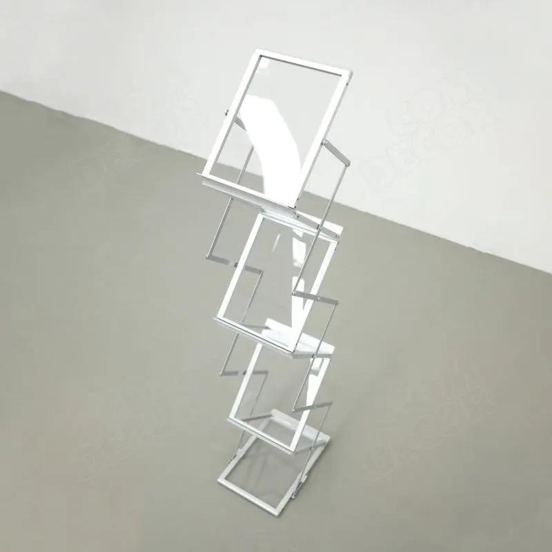 Kaasaskantav viie akrüülklaasist riiuliga põrandal seisev trükisehoidja A4 formaadis trükistele.