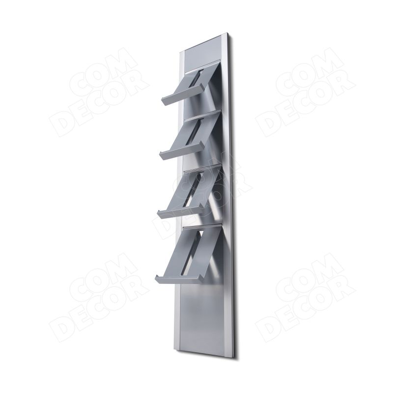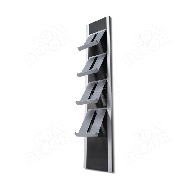 Lakoonilise disainijoonega kvaliteetne 4 riiuliga A4 trükisehoidja seinale. Valikus on 2 värvikombinatsiooni. Võib tellida brändinguga.