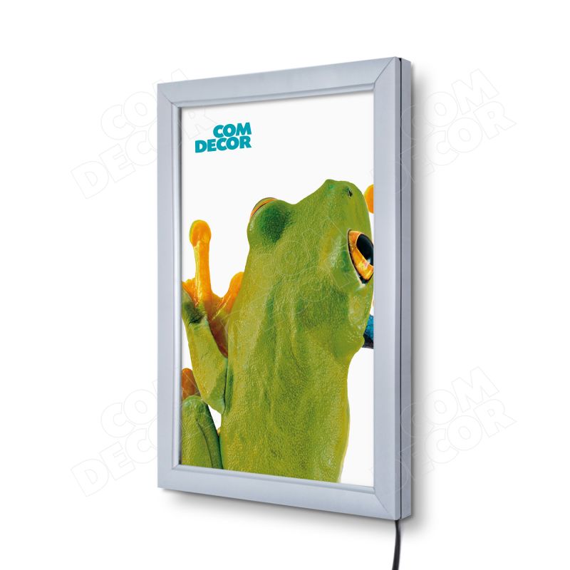 Kitsa raamiga ühepoolne õhuke valguskast. Snap-raamiprofiil võimaldab graafikat väga lihtsalt vahetada.