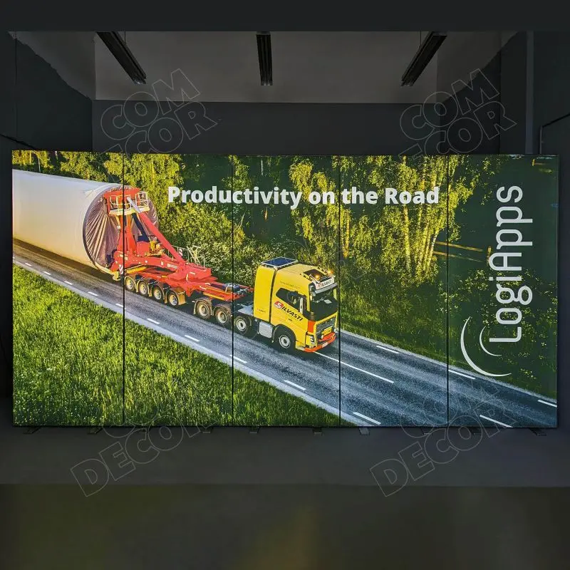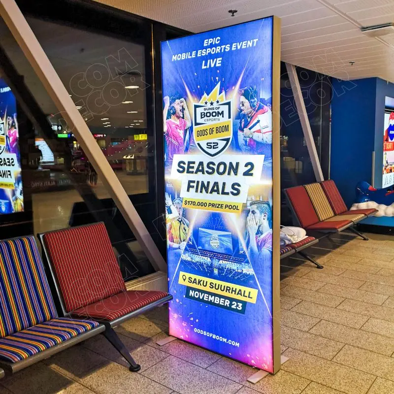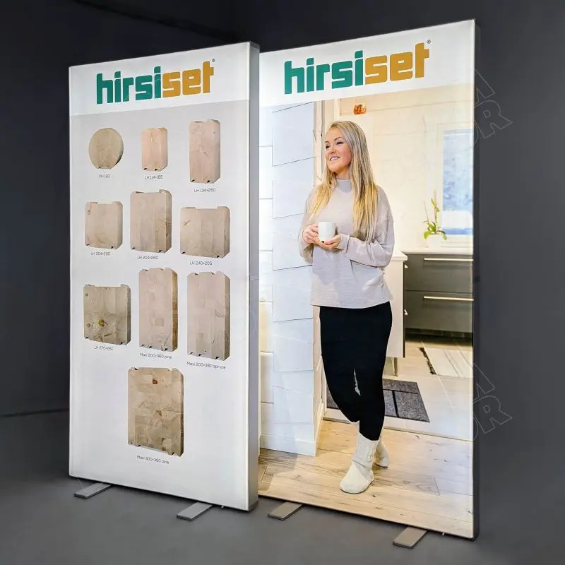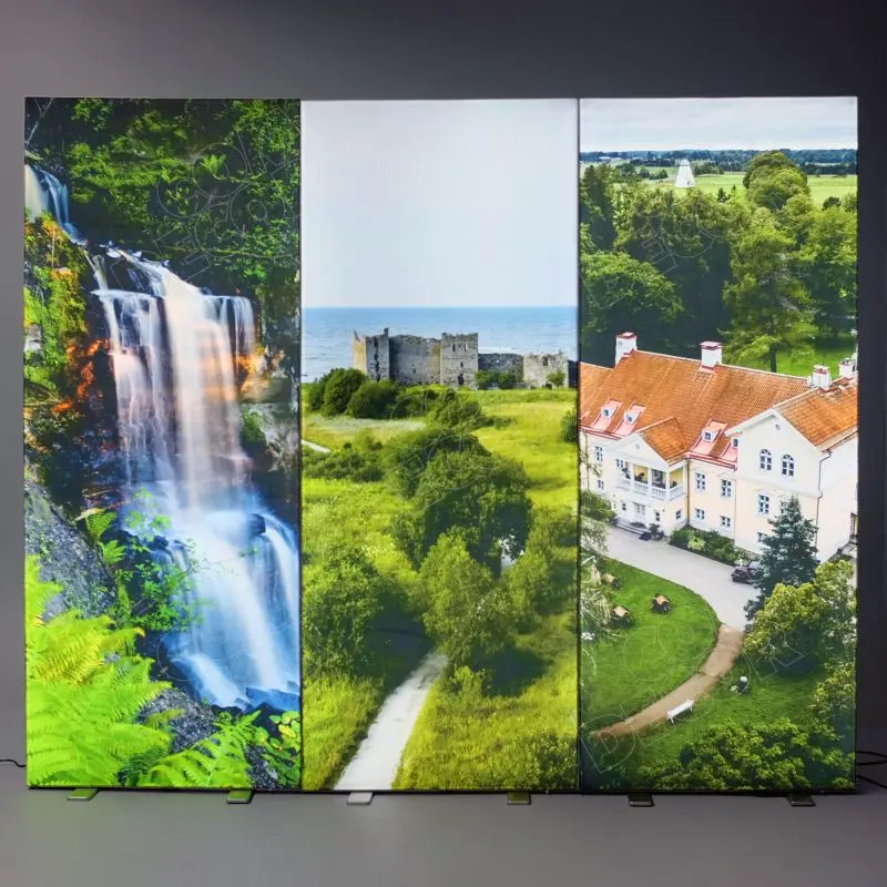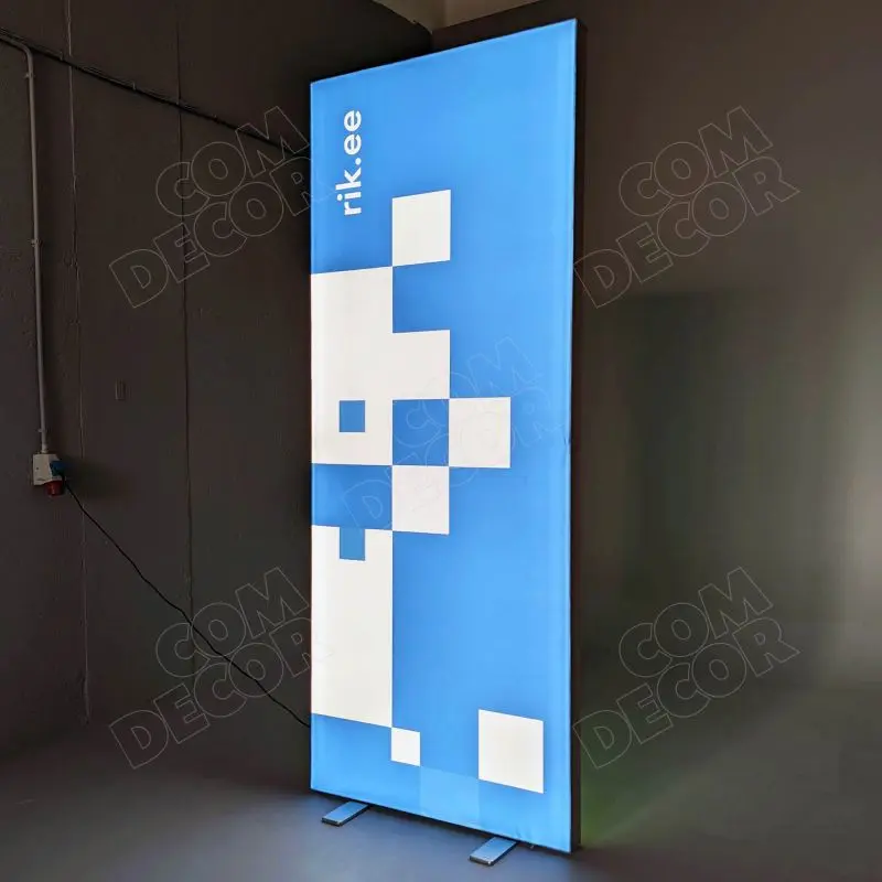 Kaasaskantav valguskast. Lihtne paigaldada ja kaasas kanda. Graafika on trükitud tekstiilkangale. Mõõdud 1 x 2 m ja 1 x 2,5 m.