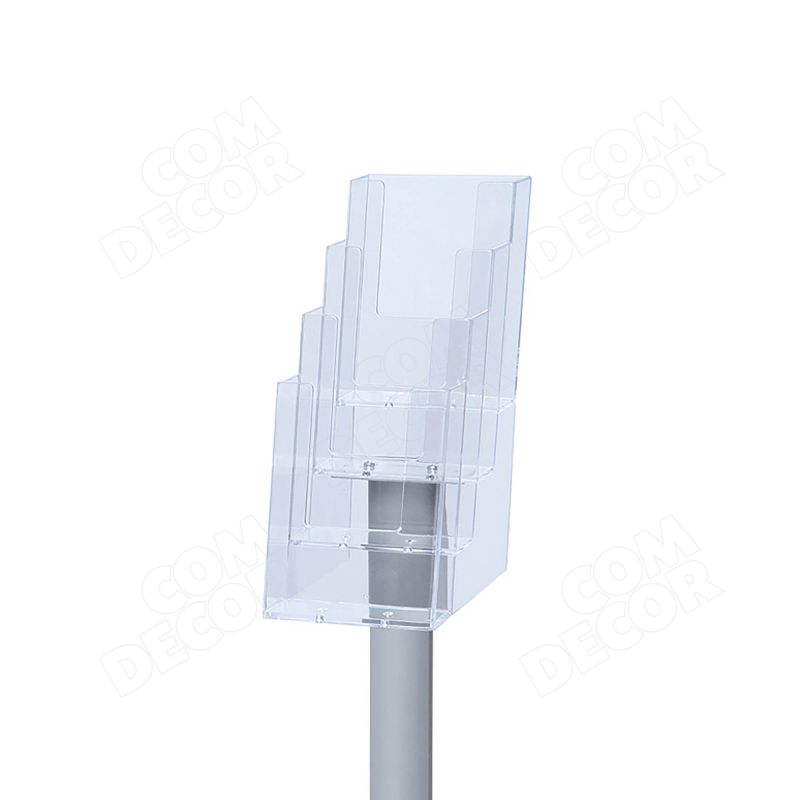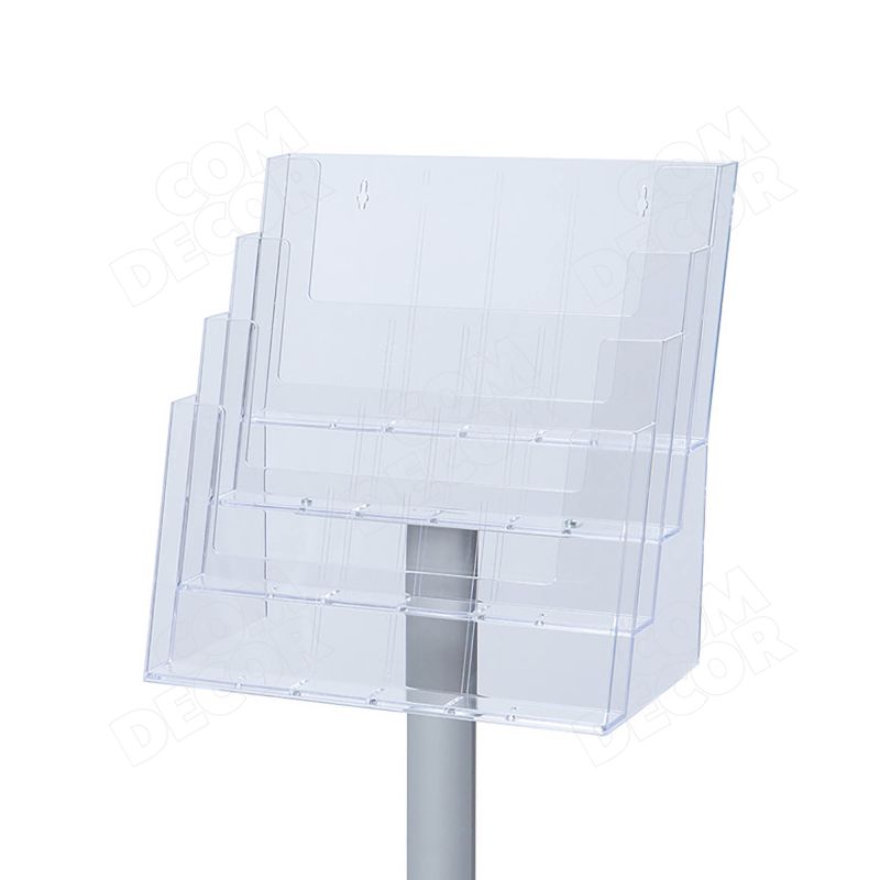 Elegantne seisev trükisehoidja kataloogidele, brošüüridele, voldikutele, flaieritele ja blankettidele. Valikus 3 ja 4 sahtliga mudelid A5, A4 ja DL formaadis trükistele.