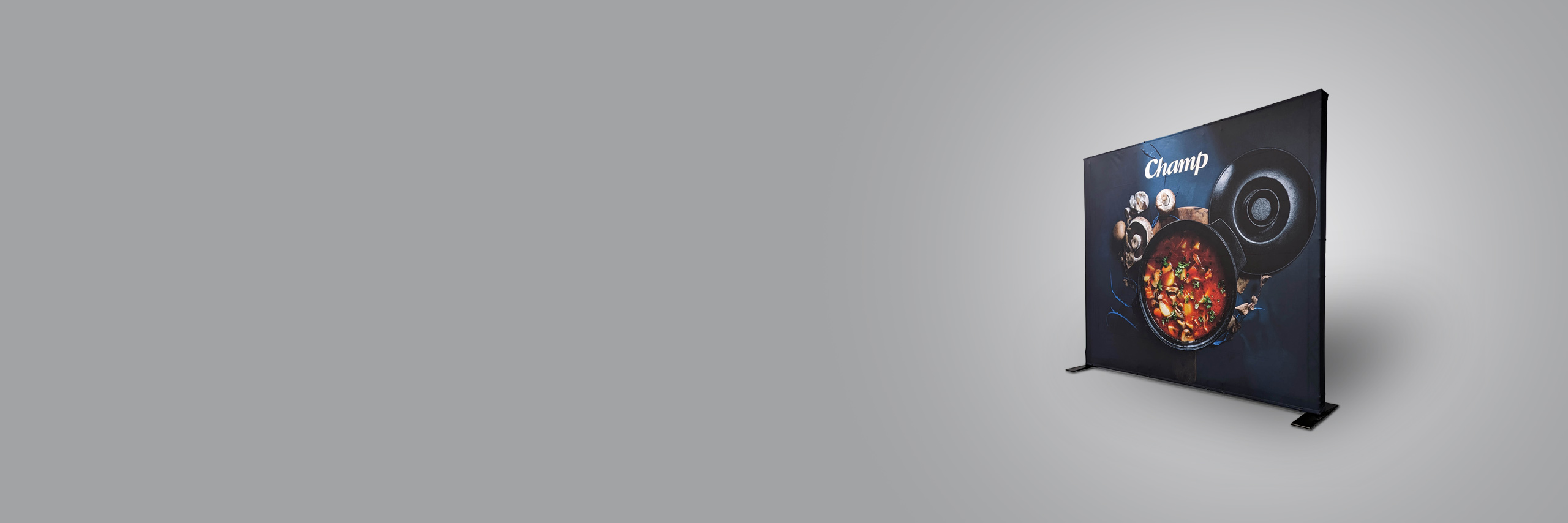 Kumer trükitud kangaga kaetud zipper-wall sein. Trükk on seina mõlemal küljel. Soodne, ülikerge, pakitult väike ja lihtsalt paigaldatav stend asendab tavalised pop-up stendid.